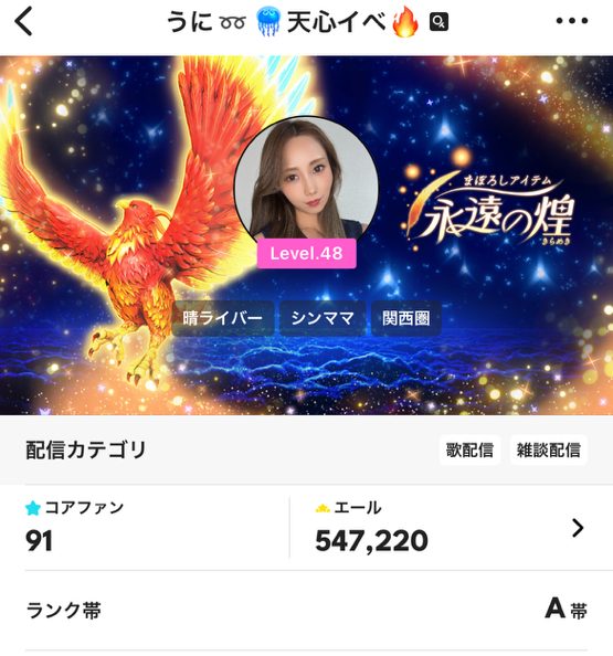 主に雑談と歌配信を中心に活動しており、常に高ランクの人気アカウント。明るい関西弁でのトークと、スレンダーな体型に合わせたチャイナドレスなどのコスプレ演出が特徴です。節度ある表現ながら程よい存在感があり、大人の魅力を求める方に適したスタイルです。