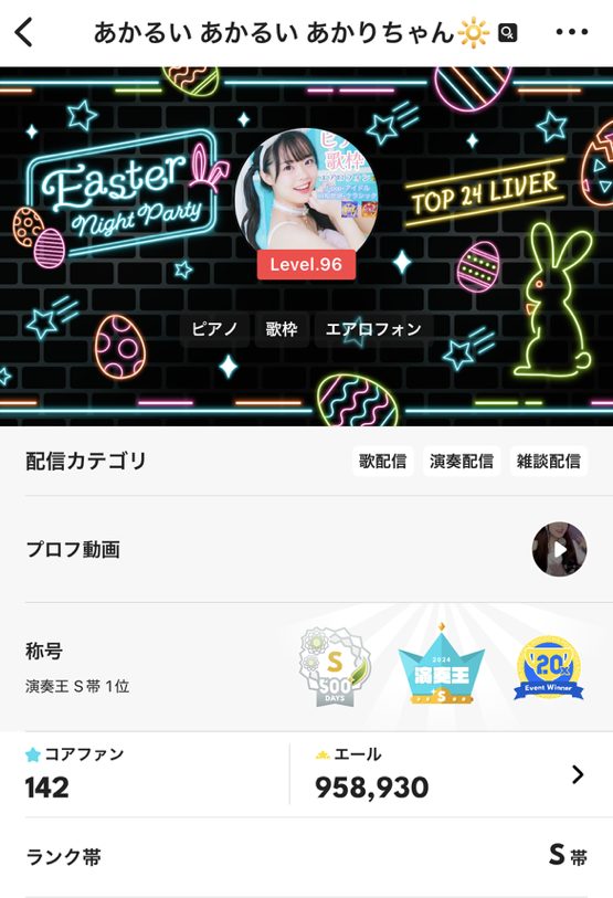 ピアノライブを主軸としながら、合間に視聴者との雑談も交える人気ライバー。演奏中に着用する衣装は、やや肌の見えるデザインで“微エロ”要素も演出されています。音楽で雰囲気を味わいたい方や、少しフェミニンな魅力を求める方におすすめです。