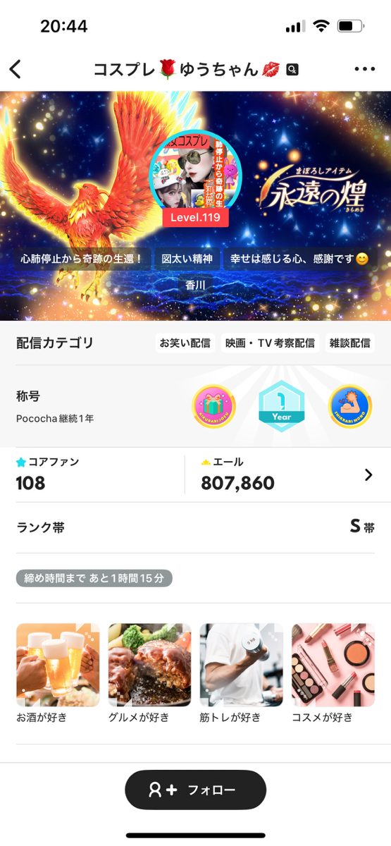 ポコチャ内でもトップクラスの人気を誇るライバーで、雑談やエンタメ系の配信が多彩。定期的に開催するイベントでは、ナースなどのテーマコスチュームを取り入れ、視覚とコミュニケーションの両方で楽しませてくれます。コスプレとトーク、両方の要素を重視したい方に向いています。