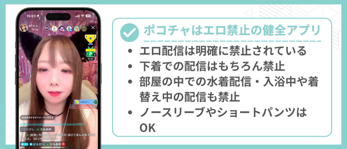 まずは、ポコチャにおける禁止事項、エッチな配信の許容範囲について解説します。
